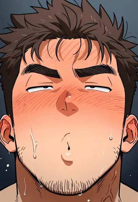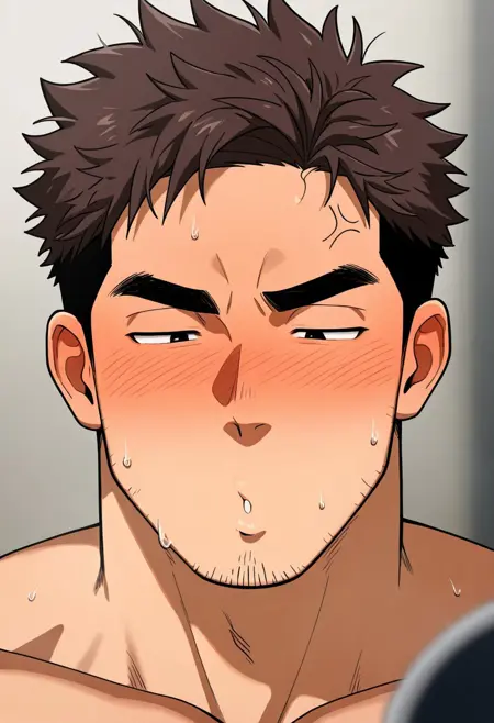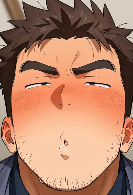 세부 사항: 뺨이 붉어짐, 입술을 씰룩거리며, 눈을 굴림, 눈이 교차됨, 눈썹을 찌푸림,