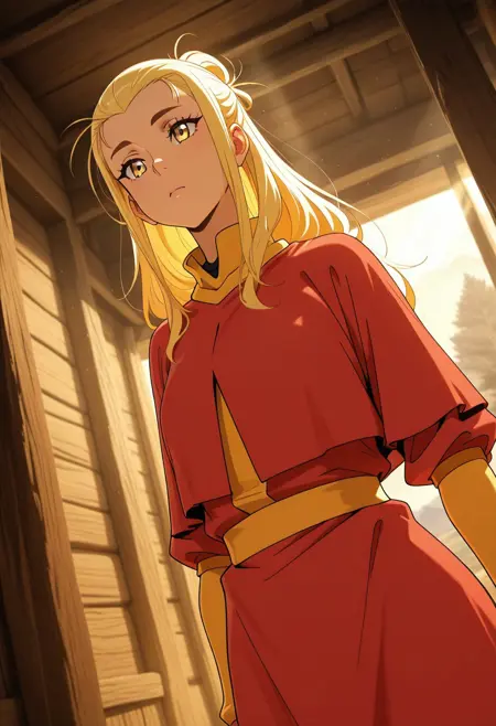 Robes of the Air nomads, red and yellow robe, long sleeves, collar, robe,