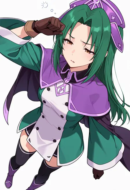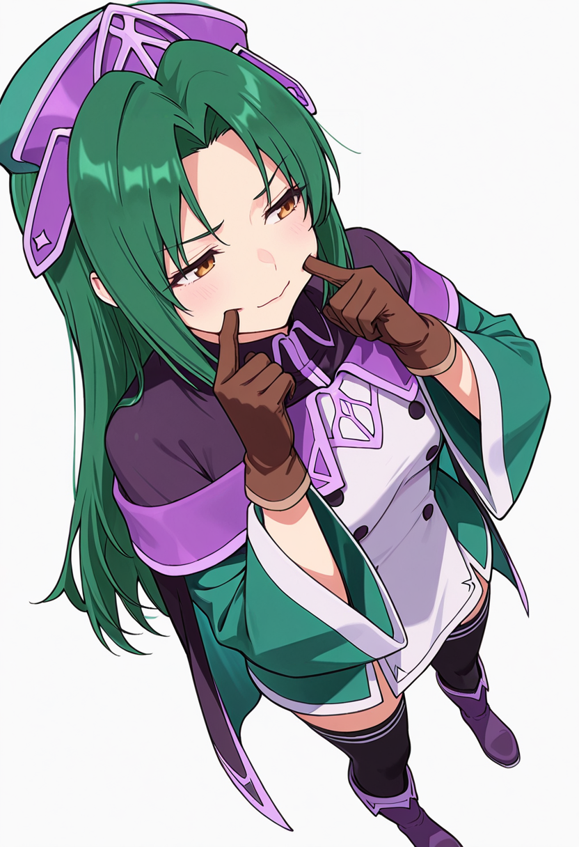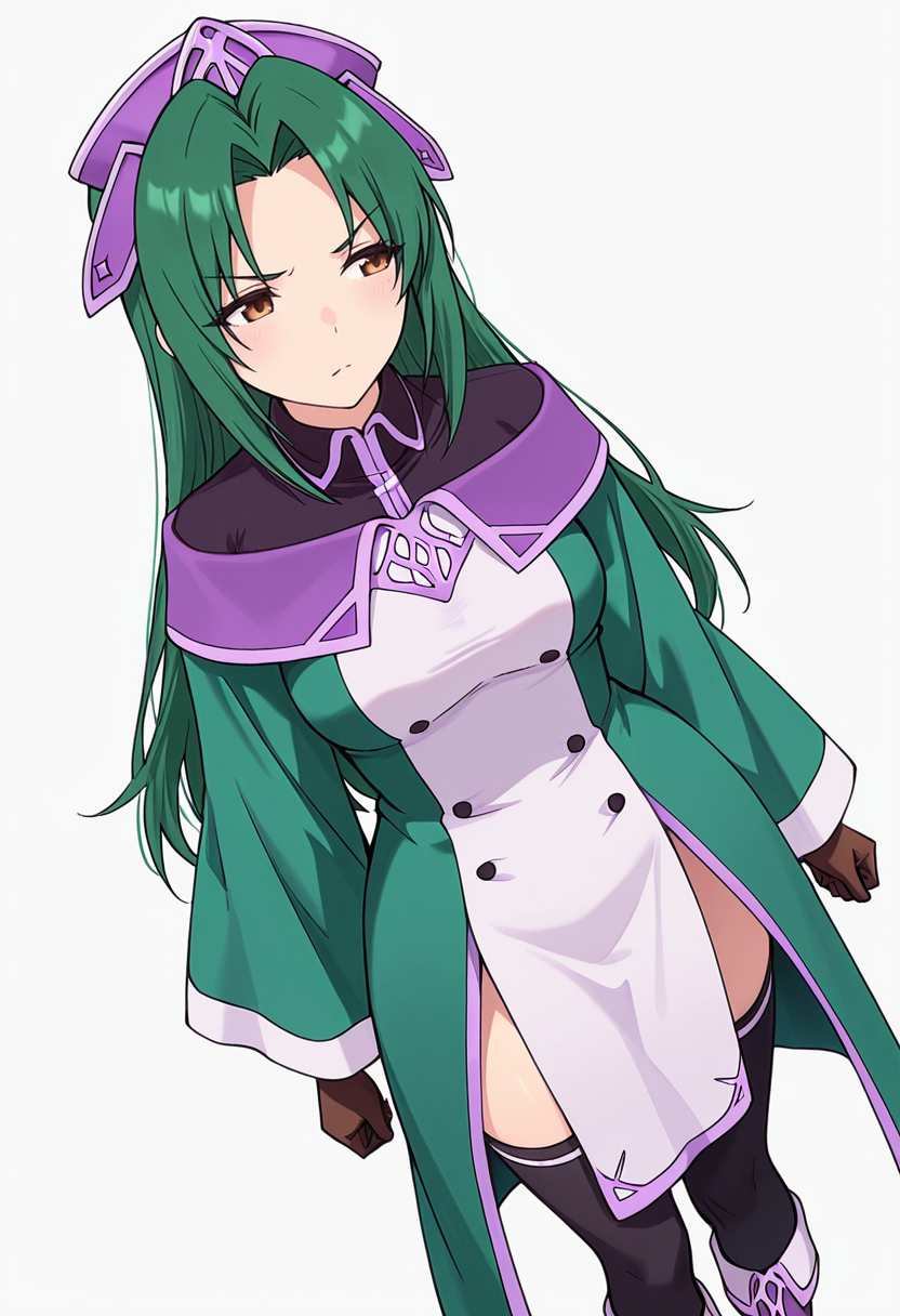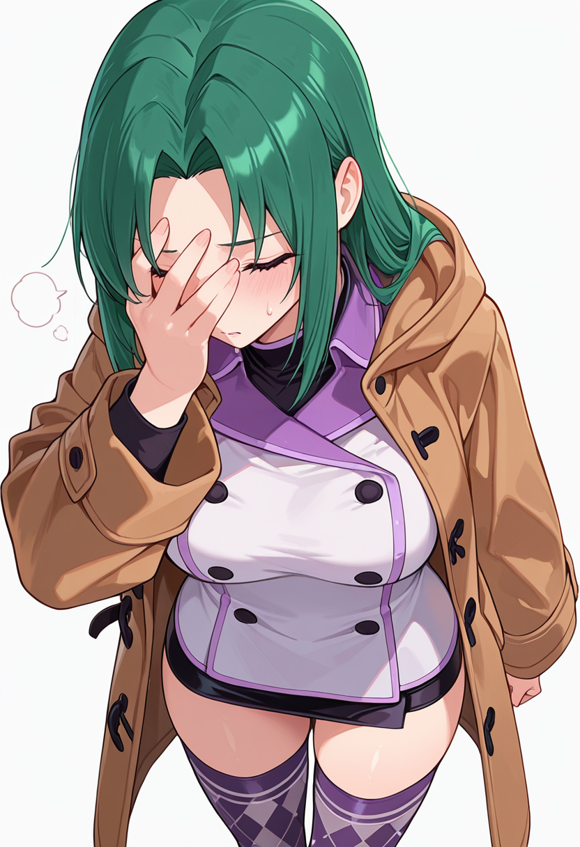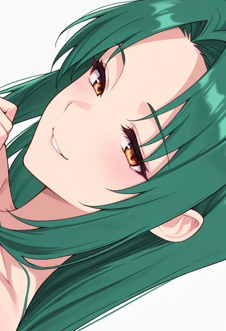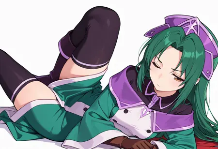 camilla_cnr, 1girl, green hair, long hair, parted bangs,closed eyes,