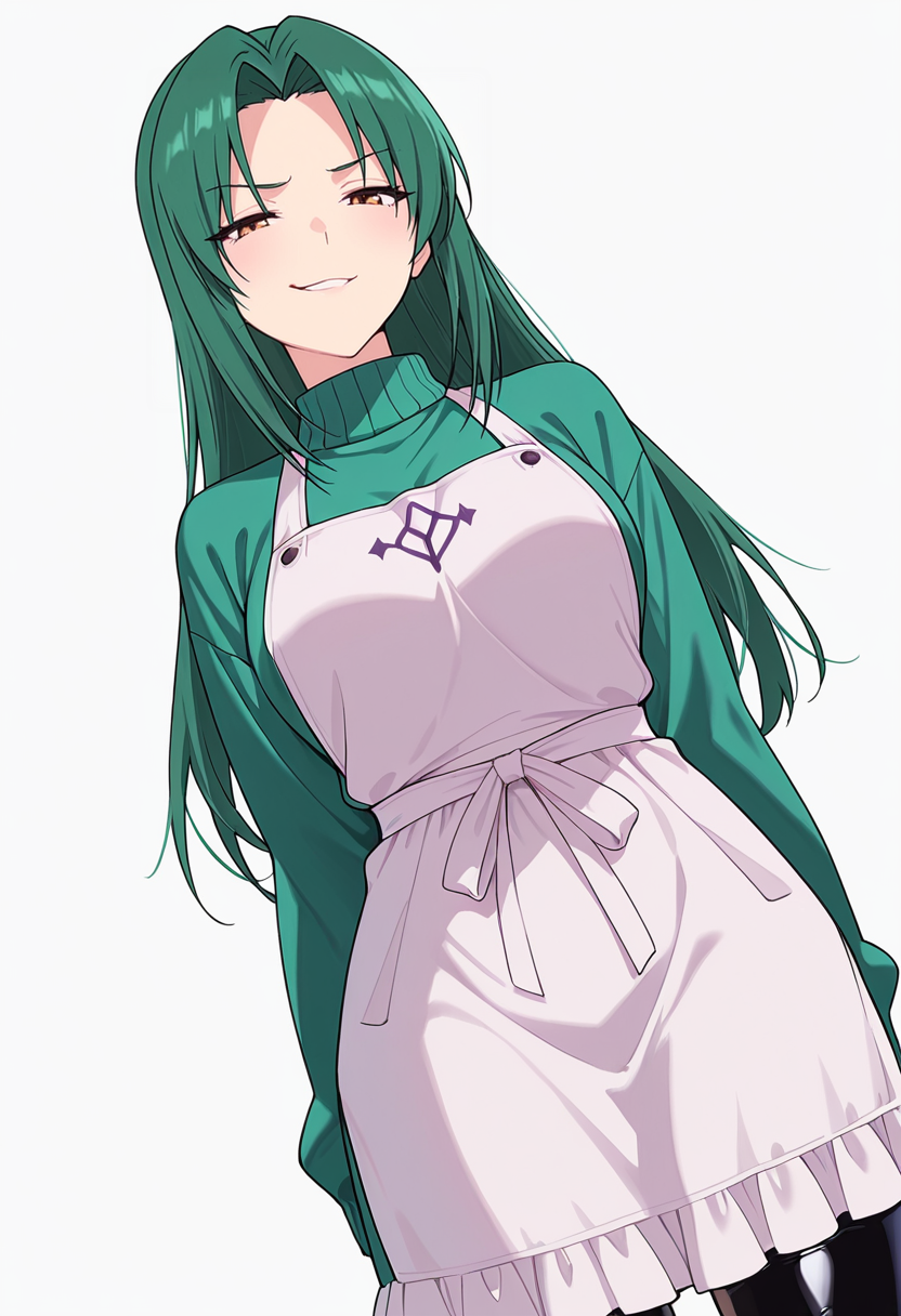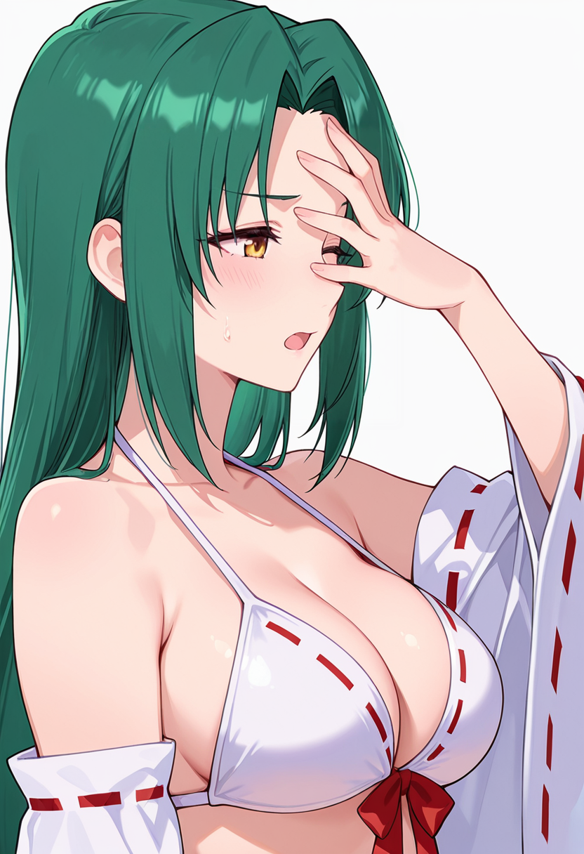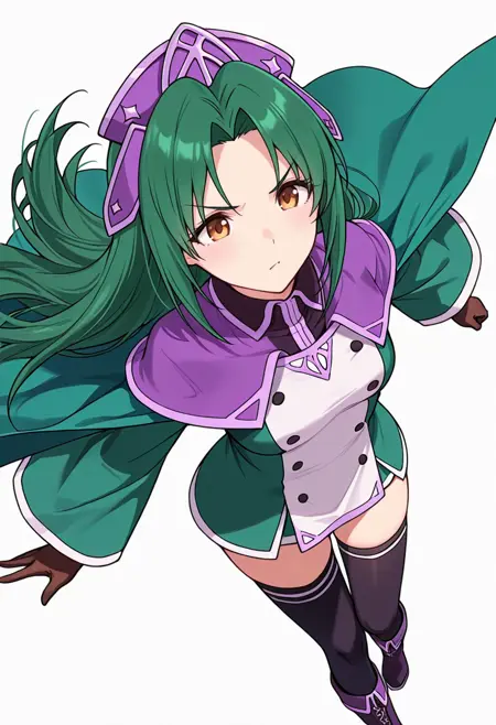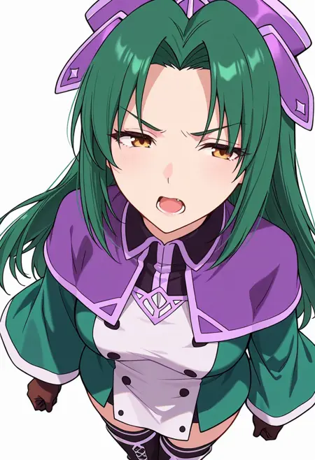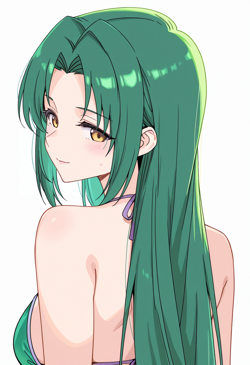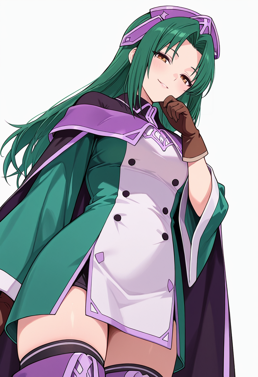 camilla_cnr, 1girl, green hair, long hair, parted bangs,closed eyes,