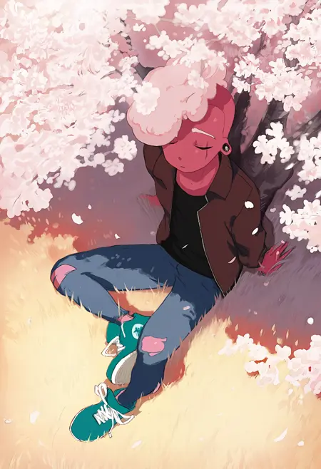 仅触发词及外观(粉皮肤):larspink, pink skin, 1boy, pink hair, black eyes, scar on face, scar across eye, mohawk, ear gauge