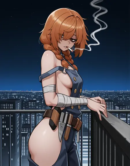 「未着用のヘルメット」などのプロンプトと併用すると、彼女の「ハードハット」が重複して生成されることがあります。