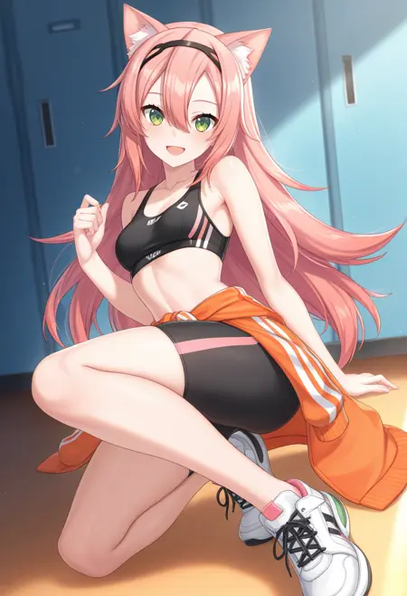 yuna_solar_nekoforge,1girl,green eyes,pink hair,hair between eyes,hairband,small breasts,