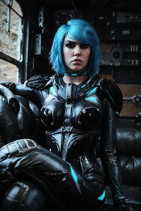 choker, spacesuit, shiny futuristic outfit,