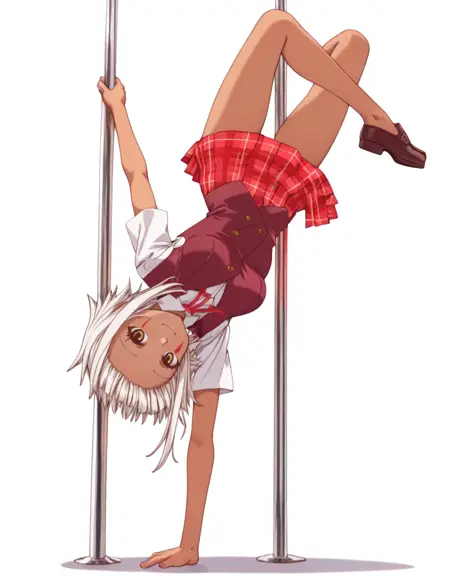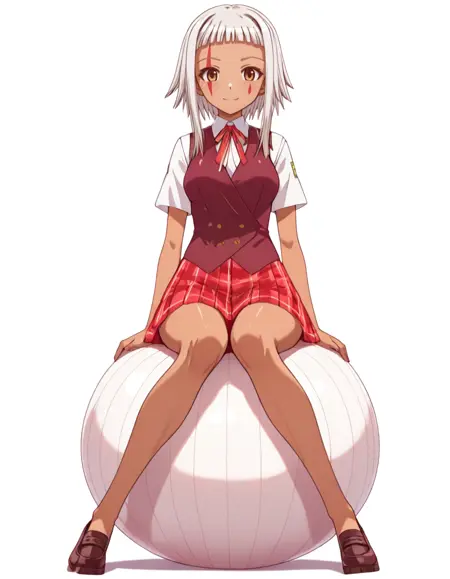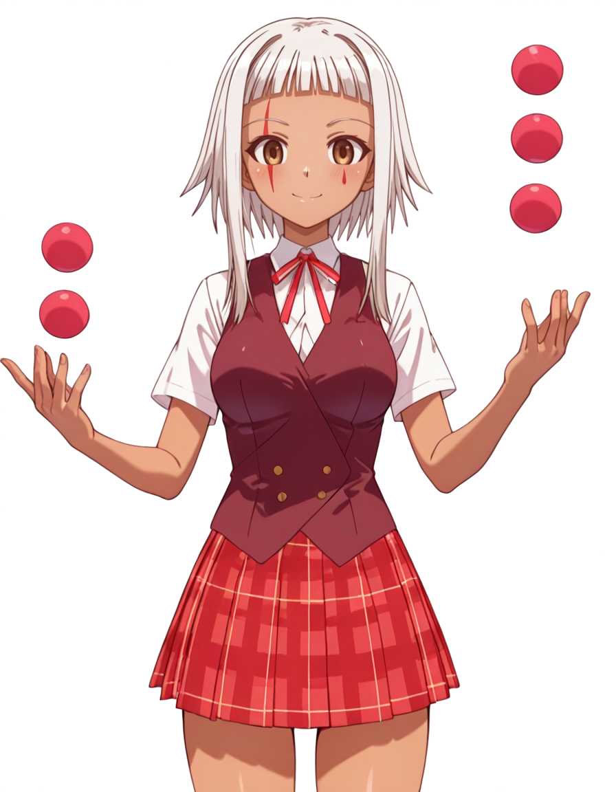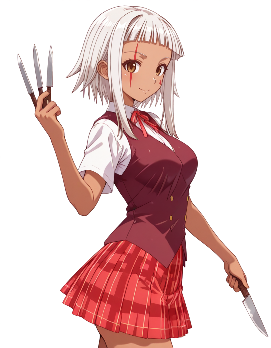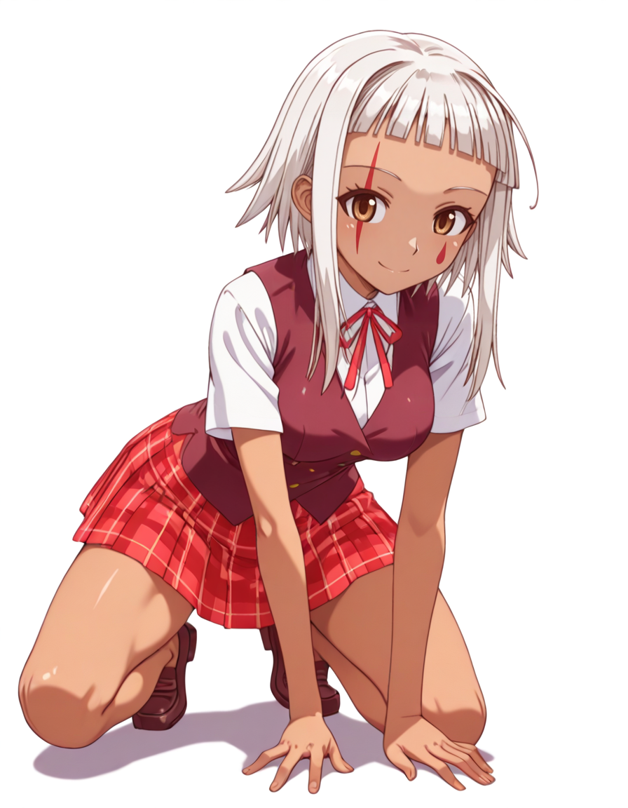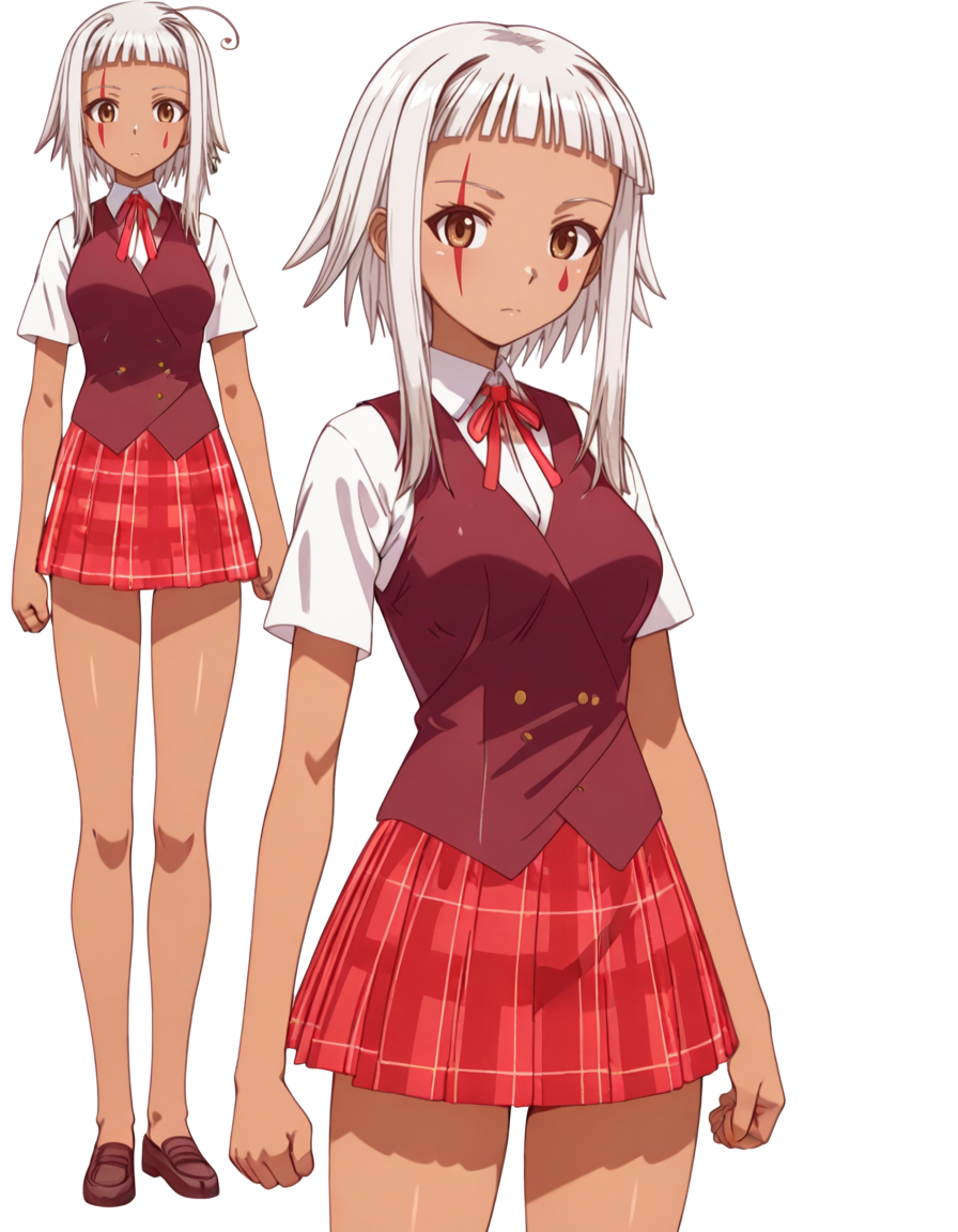 zazie negima, short hair, white hair, dark-red facial mark, hazel brown eyes, dark skin,