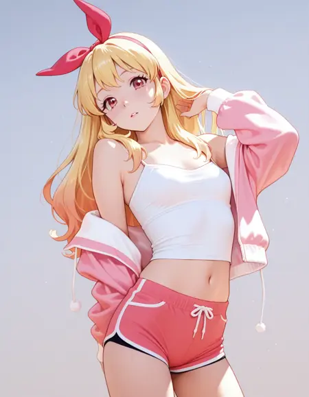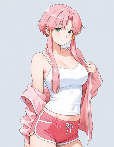 A mini sized LoRA model with pink pets outfit worn by BJ.