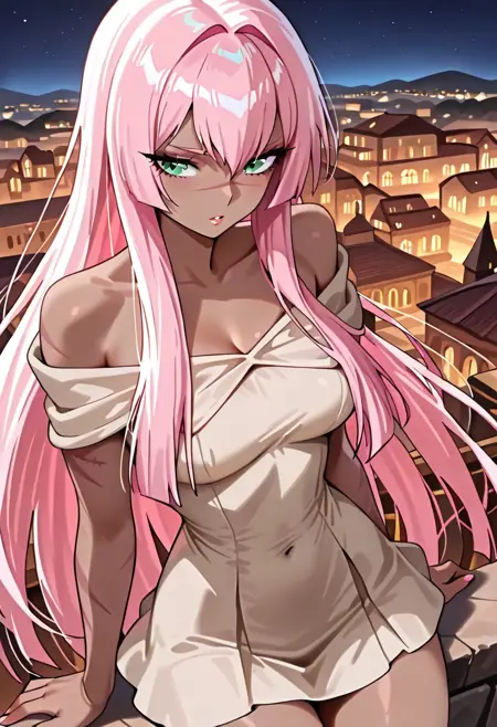 索尼娅,1名女性,粉红色头发,疤痕,绿色眼睛/面具