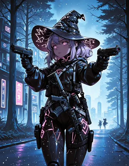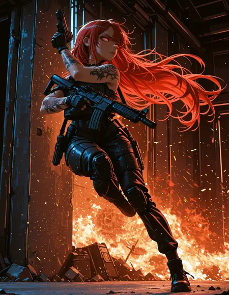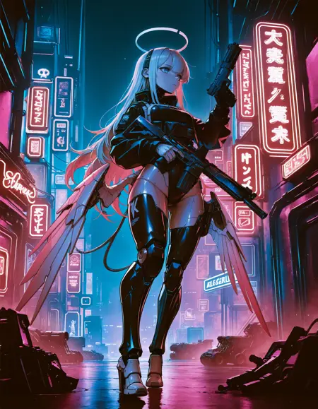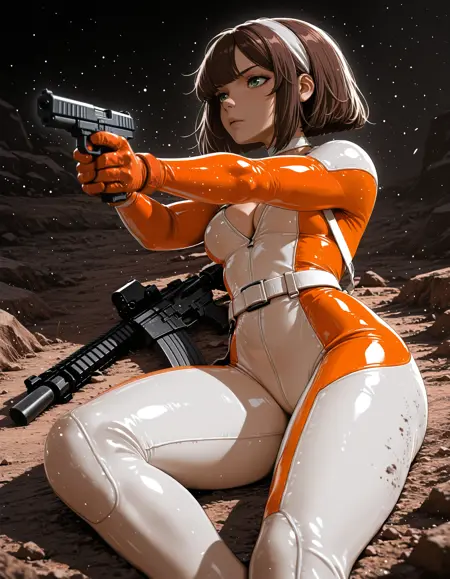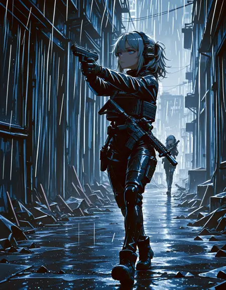 1girl, rifle_pistol_transition, holding pistol, rifle on body, assault rifle, sling, aiming