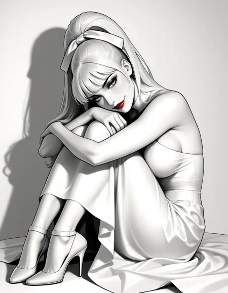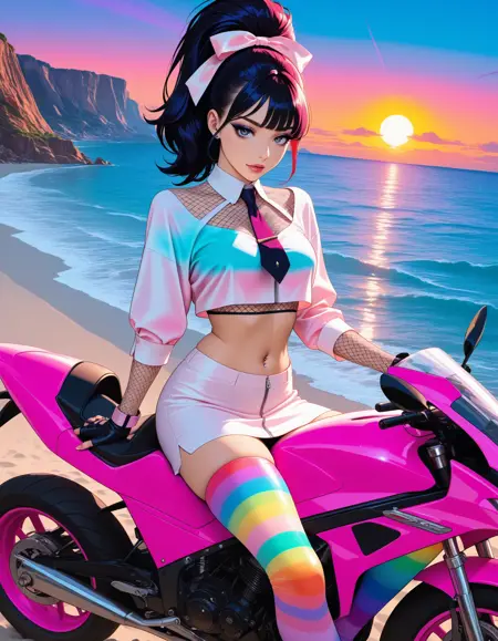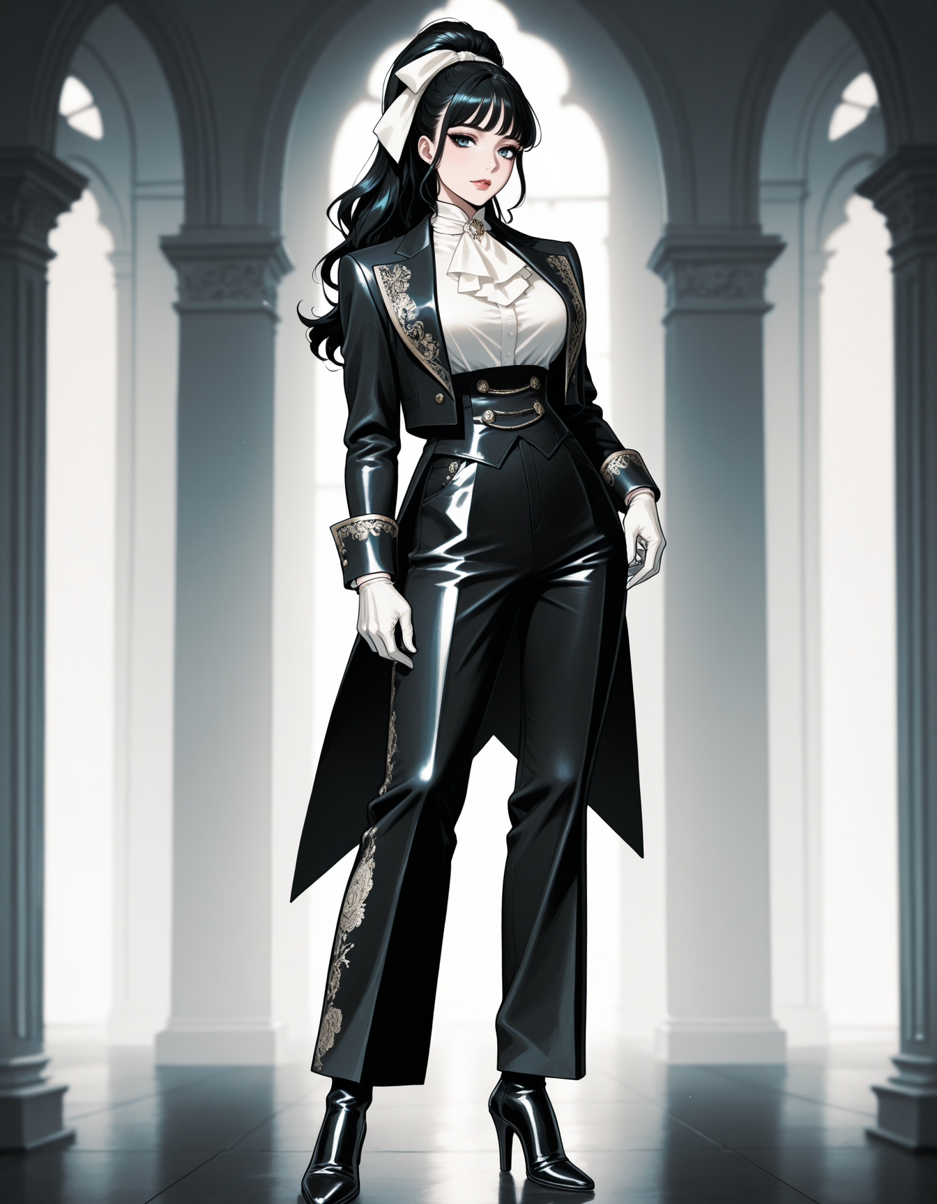m0d, (眼影, 黑色眼线, 睫毛), 高马尾, 大马尾, (发带:1.2), 纤细刘海
