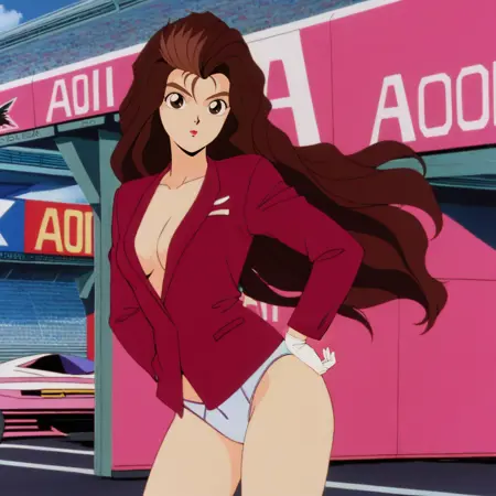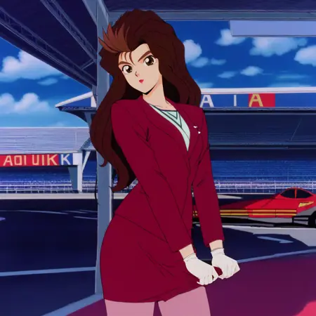 未来GPXサイバーフォーミュラTVシリーズのライバル的な美女。紫のチームAoiの衣装は、この投稿のサンプル画像通りですが、他のキャラクターほど一貫性がありません。