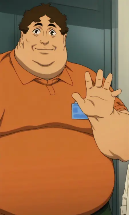 tokita kosaku (paprika), brown hair, brown eyes, overweight, mature male, fat neck, fat arms, fat hands, fat cheeks