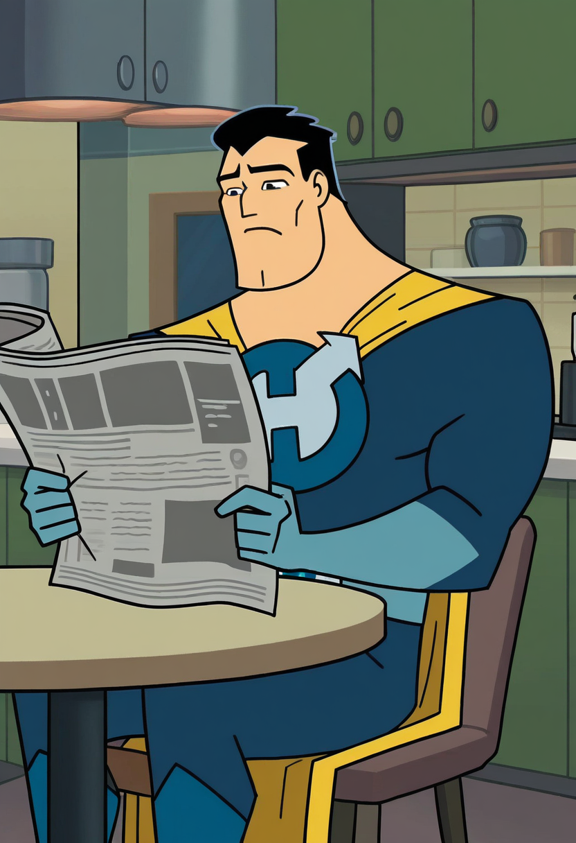 black hair, black eyes, superhero, blue bodysuit, blue gloves, belt