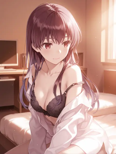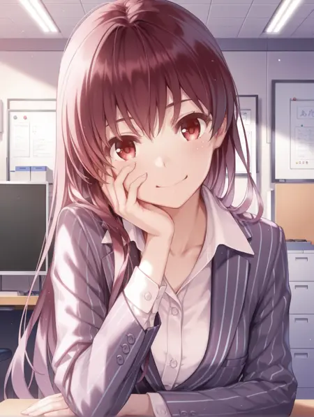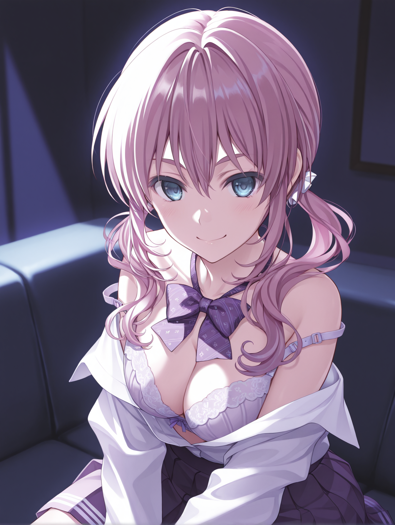 아카사카 유리, 세로 줄무늬 재킷, 흰 셔츠, 드레스 셔츠, 세로 줄무늬 스커트, 검은 팬티스타킹, 허벅지 밴드 팬티스타킹사쿠라 히나, 보라색 머리, 머리끈, 흰 셔츠, 드레스 셔츠, 칼라 셔츠, 검은 조끼, 검은 스커트, 검은 팬티스타킹우츠구 사리, 흰 셔츠, 어깨 드러냄, 브라, 스트랩 슬립, 보라색 리본 넥타이, 주름 스커트토게츠 마츠리, 차이나 드레스, 분리형 소매, 신부 장갑, 피시넷 히어스팅