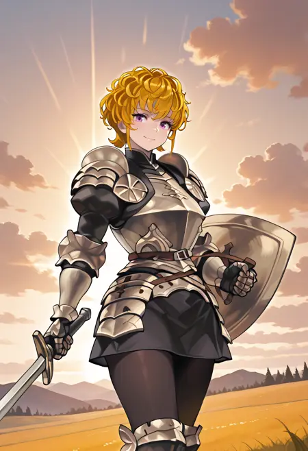 - monica (unicorn overlord)、金髪、短髪、カールヘア、紫の目