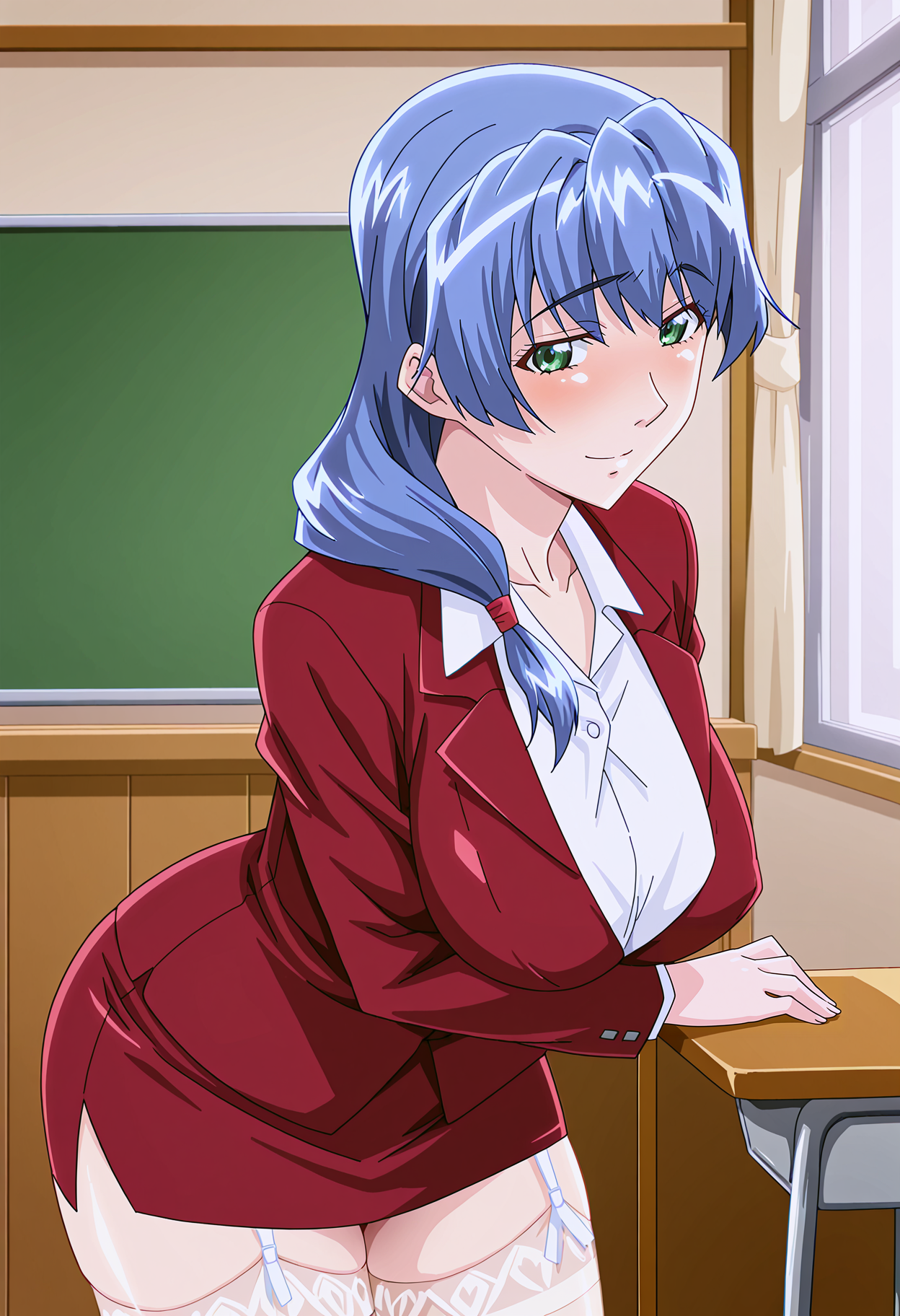 触发词:吉野千香,绿色眼睛,蓝色头发,长发,过肩发,成熟女性