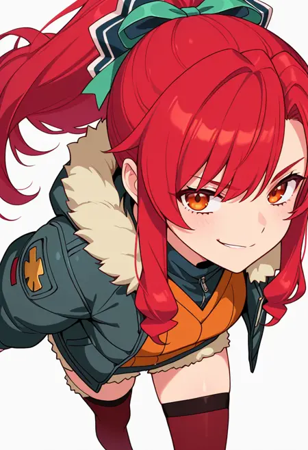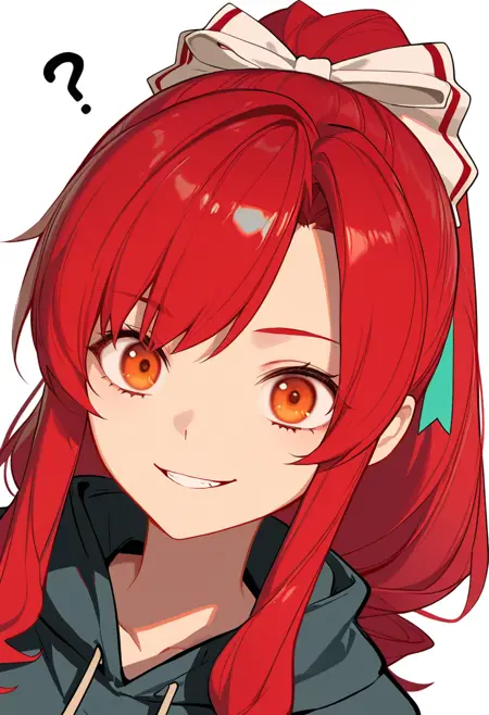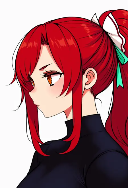 marina_cnr, 1girl, red hair, long hair, ponytail, orange eyes, hair bow,hair ribbon,