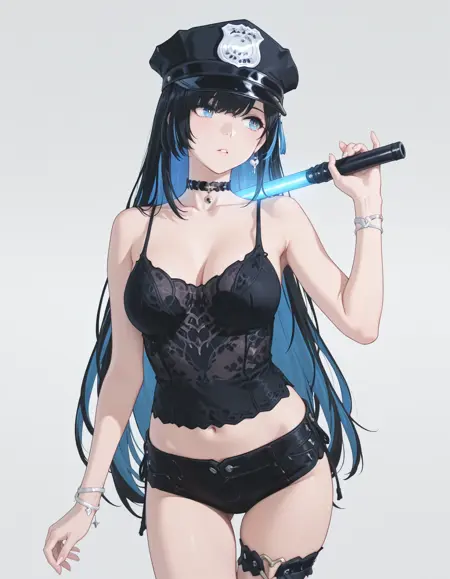 A mini sized LoRA model with sexy police outfit worn by BJ.