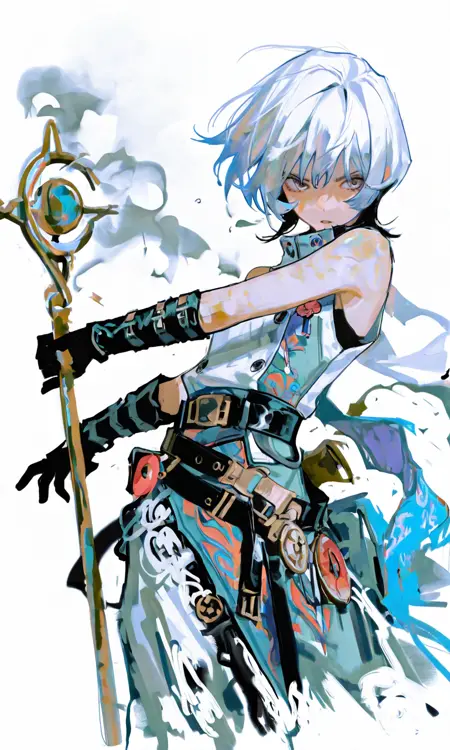Epsilon 仅靠触发词 CCA4 并不足以发挥其全部效果,但即便如此它依然表现优异。此版本色彩丰富、富有绘画感,能生成漂亮的面部。我个人认为它的最强特性在于抽象性、色彩运用、可控的杂乱感以及有趣的袖子设计(哈哈)。