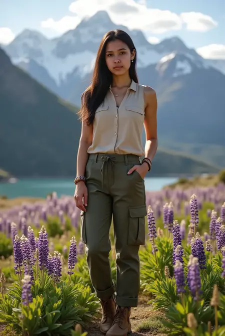 Style: Professional with traditional touches (Mapuche jewelry, woven belts, embroidered fabrics)