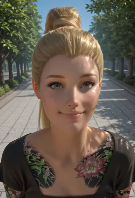 1girl,racheltrm, short skirt, blonde hair, ponytail, tattoo, seethrough tank top, in the office,