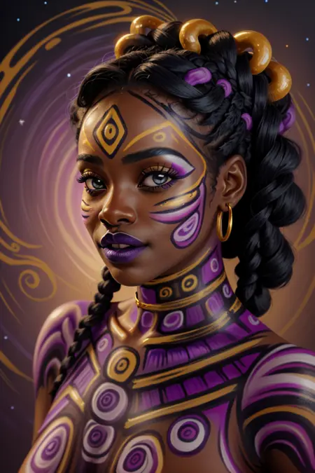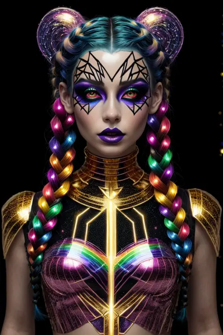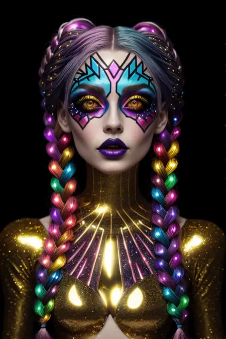 进入一个光辉与空灵交织的领域:Celestial Chromatic with Bodypaint,这是一个受彩色妆容、鲜艳的身体彩绘、独特盔甲以及待发现的隐藏元素启发的Stable Diffusion风格LoRA模型。该作品由Bryan Crump(The Crump Effect)的艺术创作孕育而来,融合了传统身体艺术、摄影与AI生成美学,邀请你探索闪耀的美、概念性的叙事,以及光、色彩与质感之间无尽的互动。