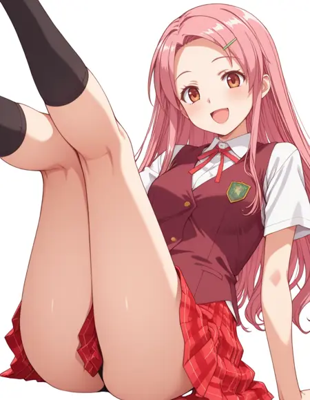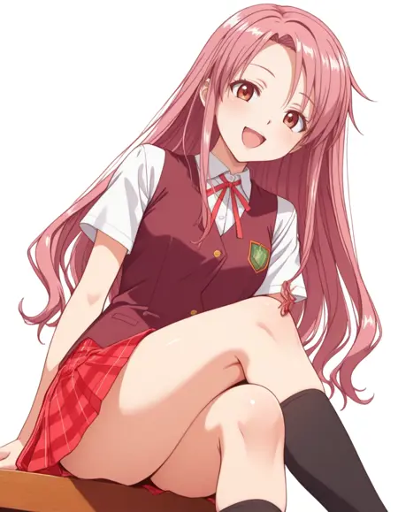 kakizaki misa, long hair, pink hair, reddish brown eyes,
