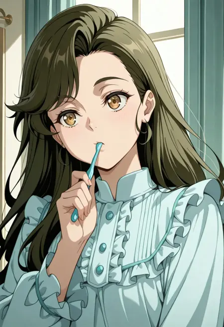 outfit_pajama, white pajama, long sleeves, frills, nightgown,