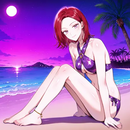 主提示词:崔正宇,中等长度头发,红发,紫水晶色眼睛