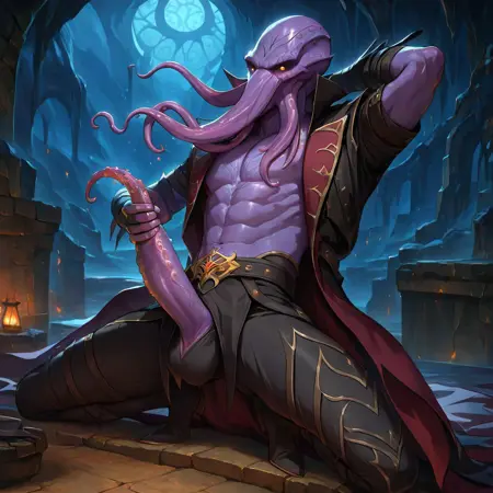 Mind Flayers: UDMV1_mindflayer, mind flayer, octopus boy, mouth with tentacles, tentacles, colored skin, dungeons & dragons
