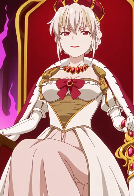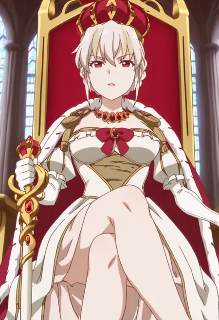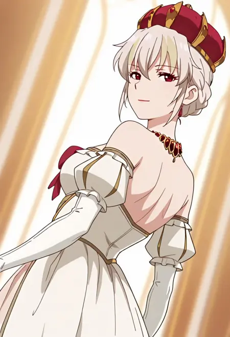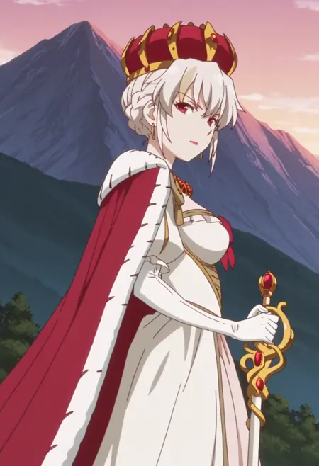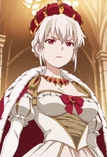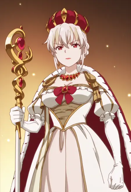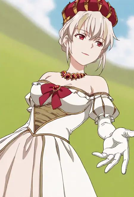 | Trained Words | 1girl, short hair, white hair, braided hair, bun hair, two-tone hair, blonde streaks, red eyes, crown, royal, queen, long dress, white dress, layered dress, off shoulder, detached sleeves, pink inner dress, puff sleeves, long gloves, red bow, red necklace, red jewelry, gold trim, scepter, fur trim, red cape, anime screenshotCopied! 1girl, short hair, white hair, braided hair, bun hair, two-tone hair, blonde streaks, red eyes, crown, royal, queen, long dress, white dress, layered dress, off shoulder, bare shoulder, detached sleeves, pink inner dress, puff sleeves, long gloves, red bow, red necklace, red jewelry, gold trim, no capeCopied! |