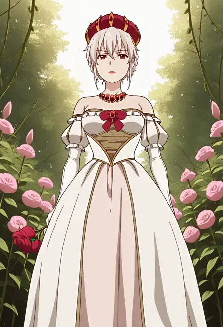 | 训练词汇 | 1girl, short hair, white hair, braided hair, bun hair, two-tone hair, blonde streaks, red eyes, crown, royal, queen, long dress, white dress, layered dress, off shoulder, detached sleeves, pink inner dress, puff sleeves, long gloves, red bow, red necklace, red jewelry, gold trim, scepter, fur trim, red cape, anime screenshot已复制! 1girl, short hair, white hair, braided hair, bun hair, two-tone hair, blonde streaks, red eyes, crown, royal, queen, long dress, white dress, layered dress, off shoulder, bare shoulder, detached sleeves, pink inner dress, puff sleeves, long gloves, red bow, red necklace, red jewelry, gold trim, no cape已复制! |