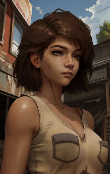 Clementine, 갈색 머리, 짧은 단발머리, 갈색 눈