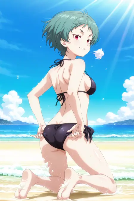彼女に別の衣装を着せようとする場合、ベルトやその他の付属品が付いてしまうことがあります。その場合は、Loraの強度を0.7~0.9に下げてください。