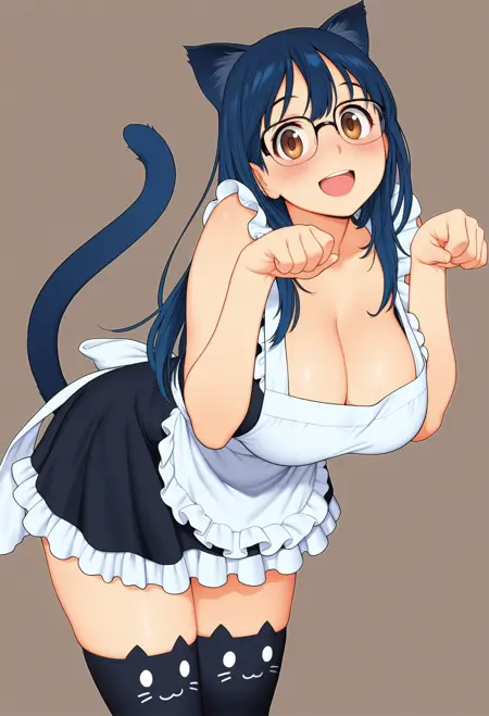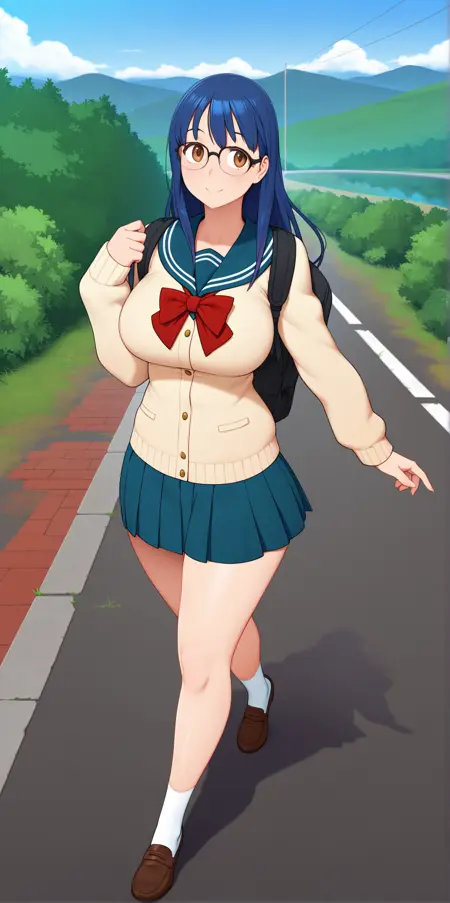 etouayane,long hair,blue hair,brown eyes,glasses,large breasts