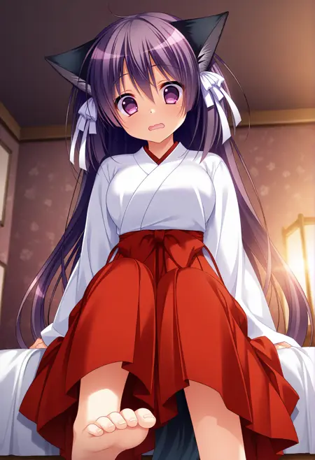 miko,white kimono,red hakama,hakama skirt,long sleeves,white ribbon,wide sleeves,waist bow,red bow,