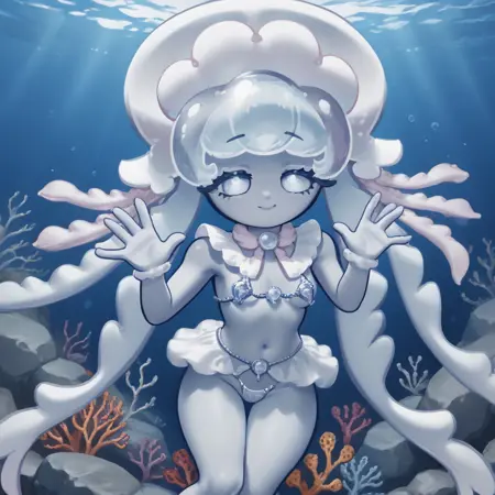 蓝色眼睛,彩色皮肤,触须头发,白色眼睛,女帽,帽子,蓝色头发,
