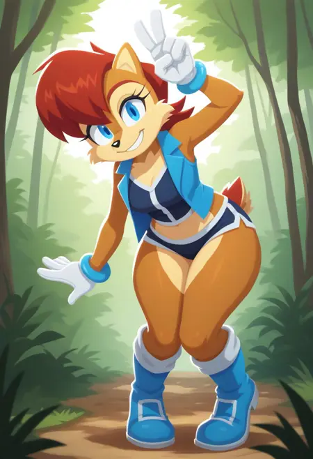 Sally Acorn Lora. 이는 Tikal과 함께 지금까지 제가 사용한 학습 데이터 중 가장 높은 수준으로, 58장의 이미지를 사용했습니다. 어찌 보면 그 정도는 비교적 낮은 편인데, 일부 사람들은 수백 장의 이미지를 사용하니까요.
