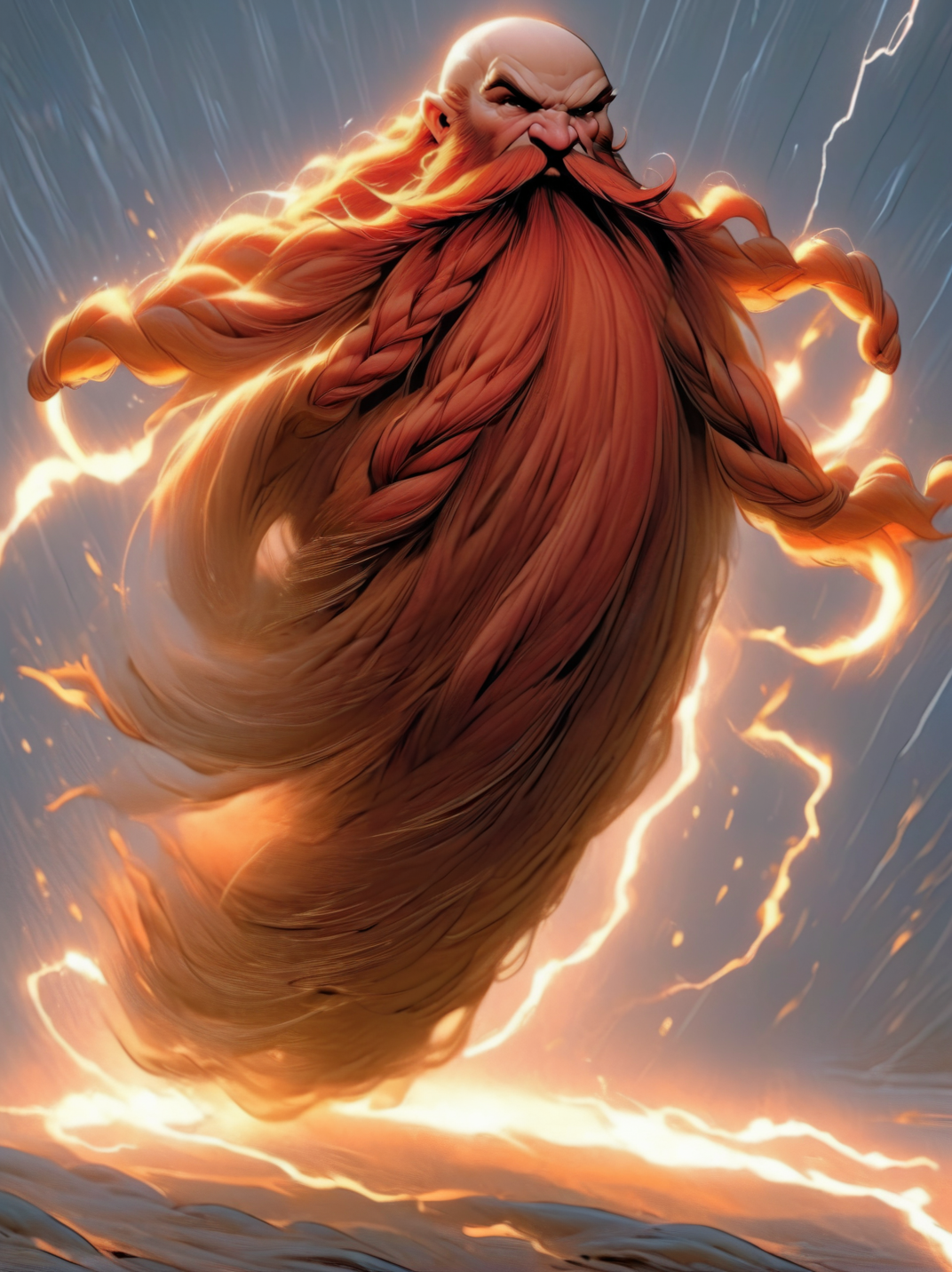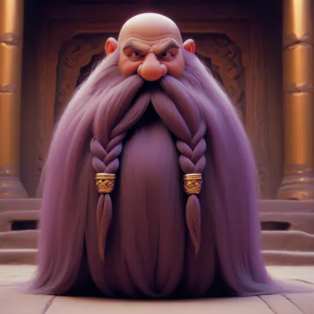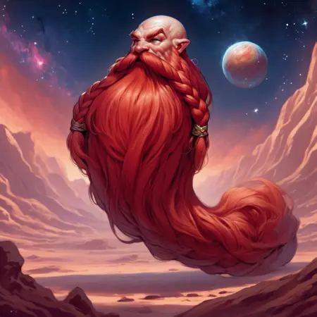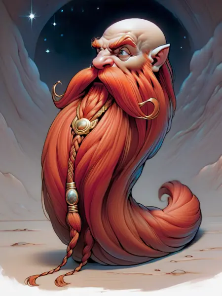 "Harry_Dwarf, dwarf-like character, flowing long red beard, braided moustache,bald , lora:Harry\_Dwarf:1"