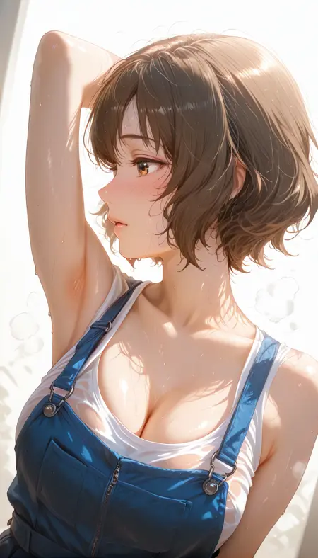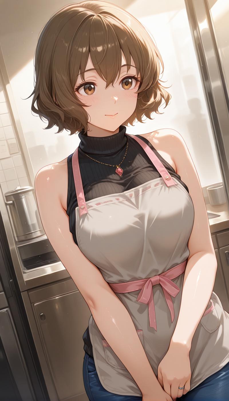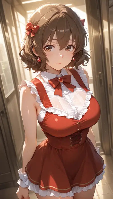 IMNamikiMeiko, 가슴, 단발, 큰가슴, 갈색 머리카락, 눈 사이 머리카락, 갈색 눈, 중간 길이 머리, 물결 모양 머리카락,