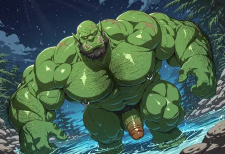 Korg is rescued by the main character when he found, trapped in a cave. He looks intimidating but under all that muscle is a big softy who cares for others. He serves as loyal protector and a house wife at the same time after the mc takes him in. Husband material.