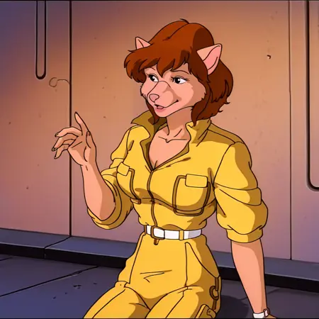• 고양이 형태 트리거: AprilONeilCatForm, 1girl, 동물 귀, 점프수트, 흰색 벨트, 갈색 머리, 레트로 아트스타일, 퓨리 여성, 팔 소매 말아올림, 1980s (스타일), 노란 바지, 가슴, 카우보이 샷