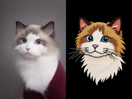 Prompt:Transform into a cartoon embroidery style,Turn the picture into an embroidery style with a black background.