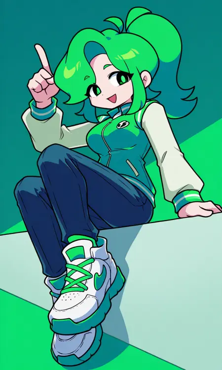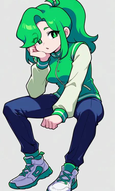| 학습된 단어 | Mitori, 1girl,green hair, green eyes,pants,long sleeves, shoes, white footwear,ponytail, jacket,layered sleeves, sneakers, green jacket,blue pants, short over long sleeves,bright pupils,letterman jacket,white pupils,hair over one eye,long hair, medium breasts,closed jacket복사됨! |