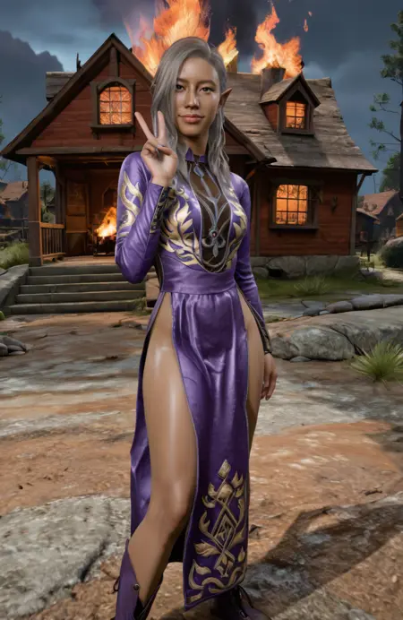 bd3f1orrick,尖耳,长发,深色皮肤女性,灰发,不对称发型,