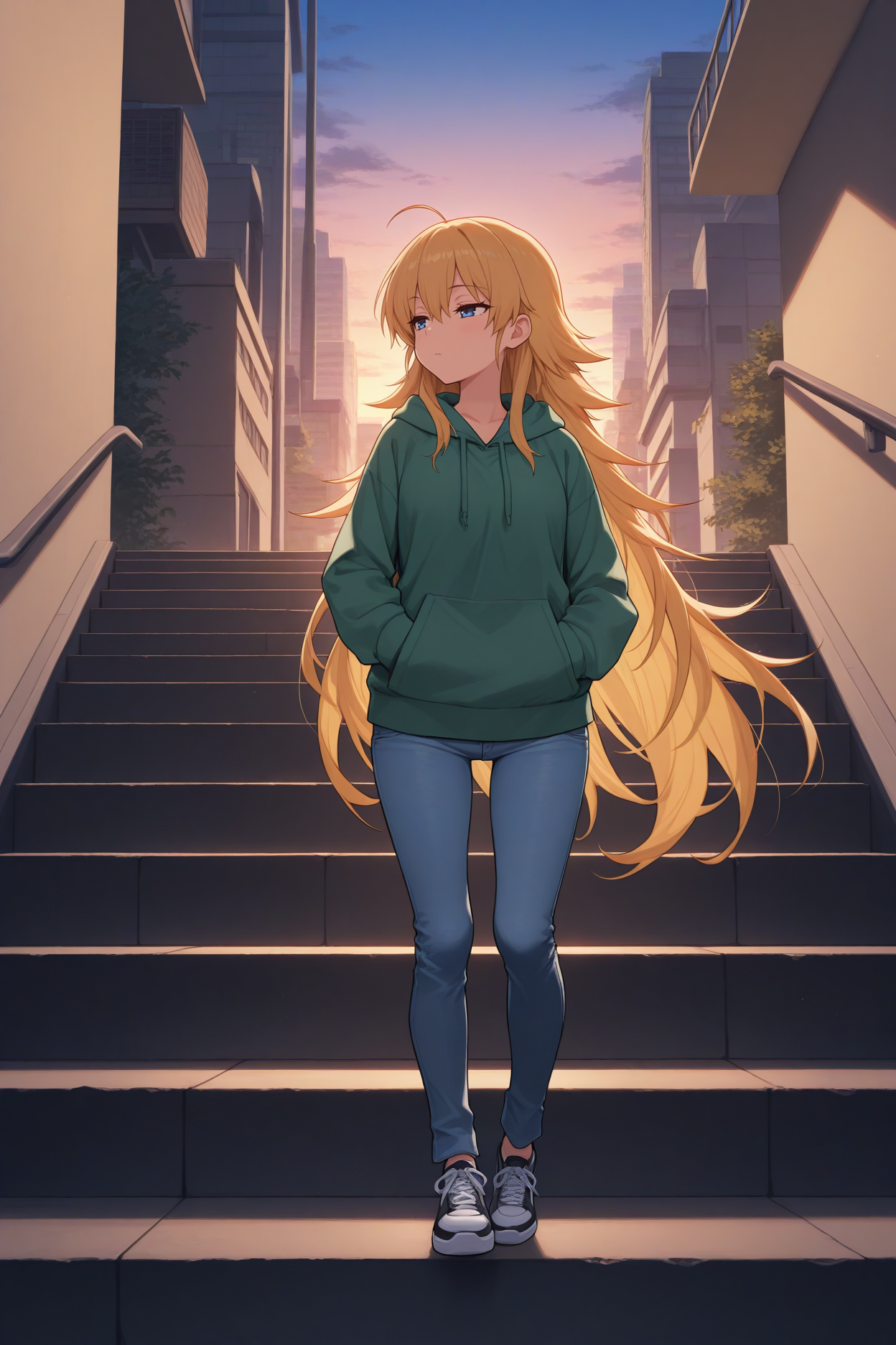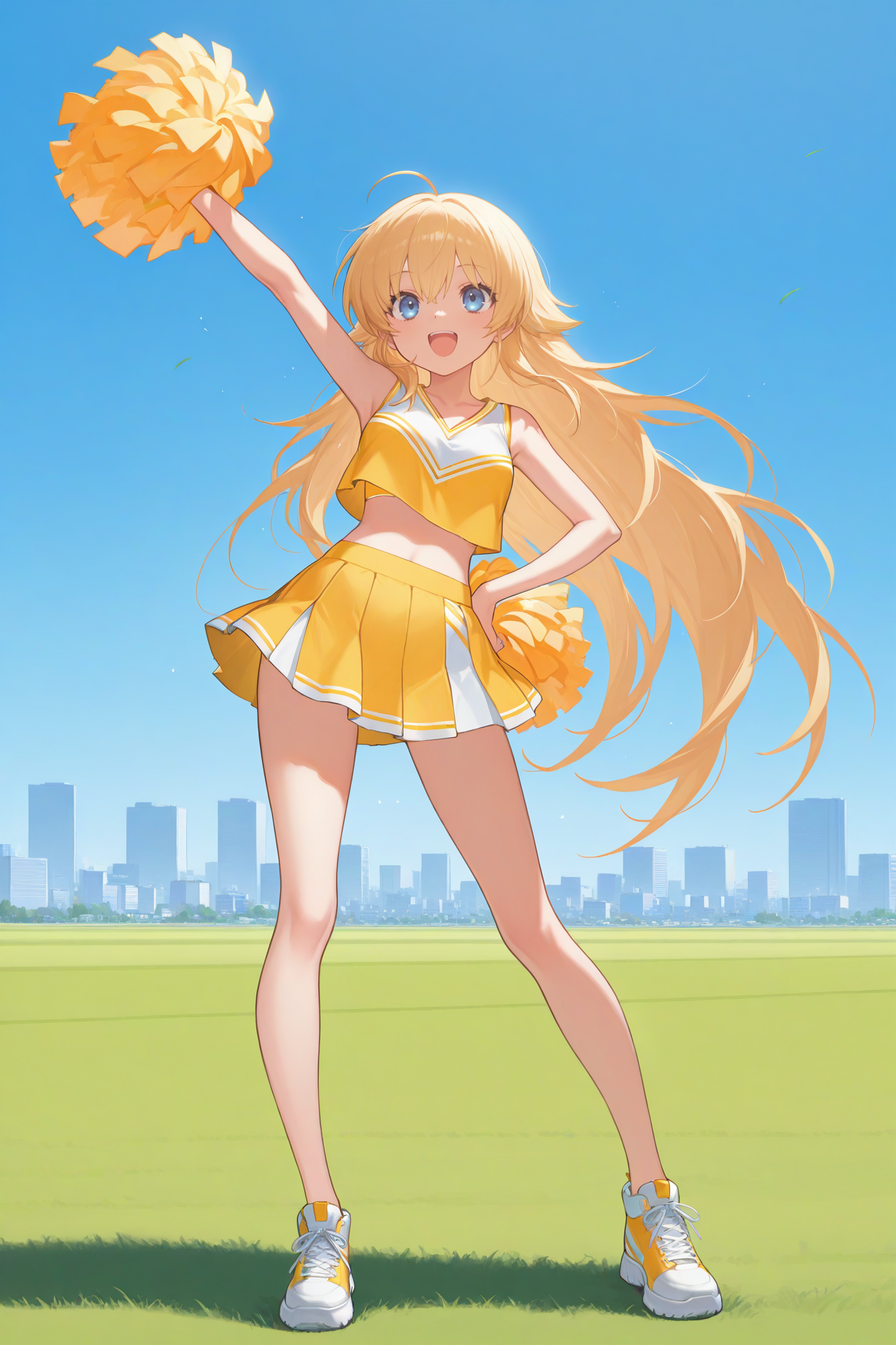 트리거 단어는 "snshr"이며, "노란 머리, 아호게, 매우 긴 머리, 파란 눈"이 필수입니다.