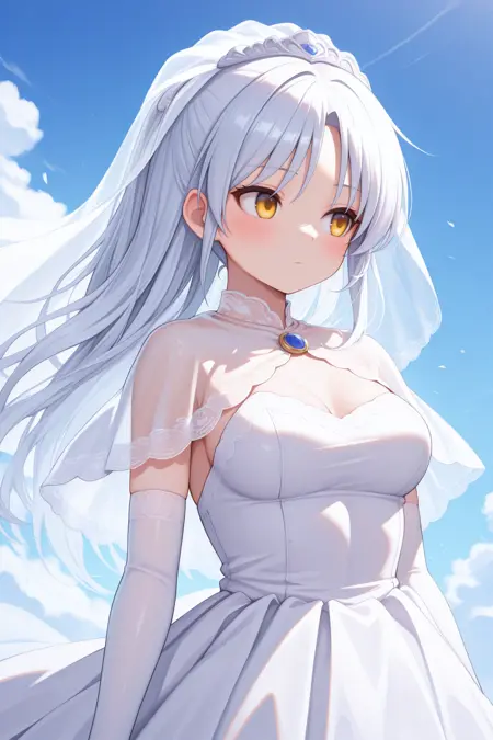 Trigger word is "tkne" and "white hair, long hair, yellow eyes" is required.
