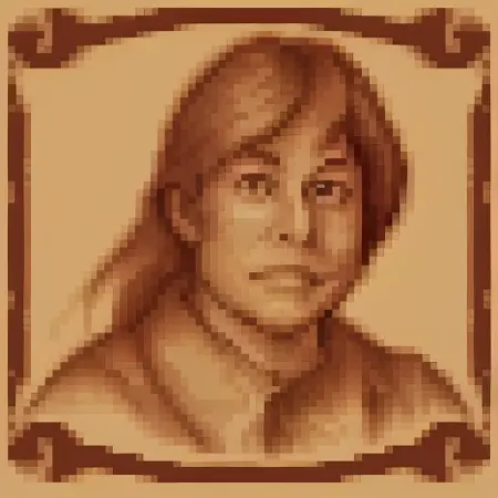 snes_lotr_portrait, sepia tone, parchment_border, pixels, portrait,