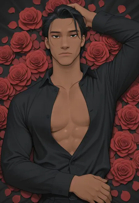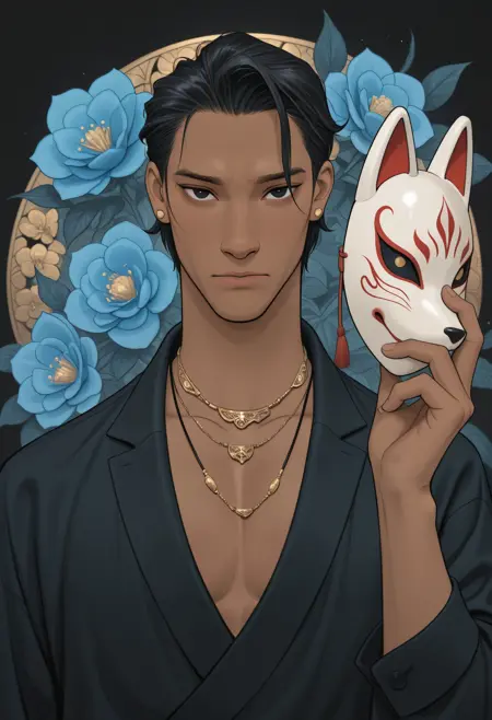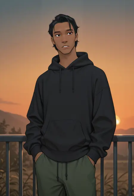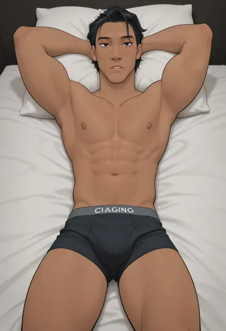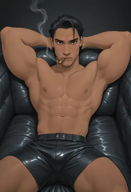 CIAgung, 1boy, male focus, dark-skinned male, dark skin, hair slicked back, black hair, short hair, black eyes