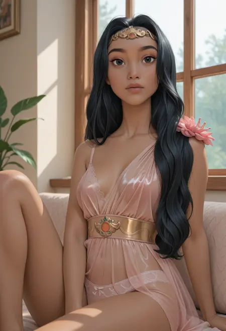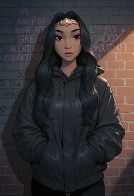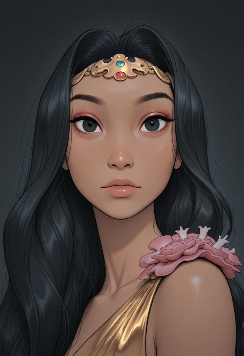 CIDenali, 1girl, black hair, long hair, dark skin, dark-skinned female, black eyes, circlet