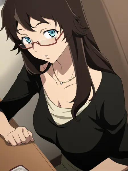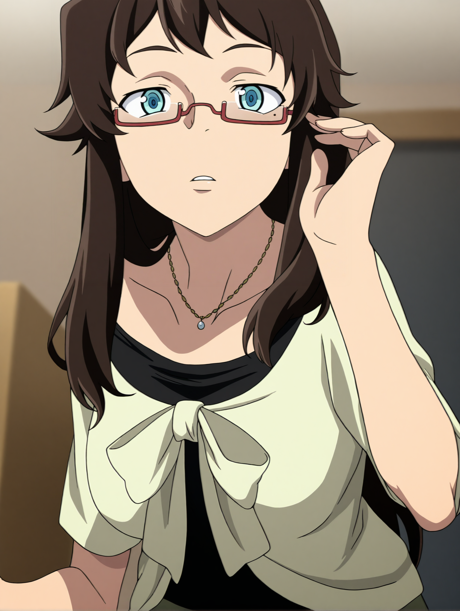 IL_Amano Rea,1girl,solo,brown hair,blue eyes,long hair,mole under eye,large breasts